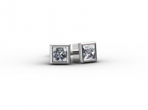 Princess Bezel set Diamond Earrings in Palladium hand set, hand finished by Polished Diamonds. Diamond studs AAA+