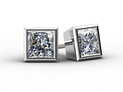 Princess Bezel set Diamond Earrings in Palladium hand set, hand finished by Polished Diamonds. Diamond studs AAA+