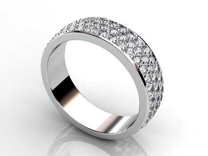 Polished Diamonds produce every diamond ring that we sell so any modifications can be made to suit. This stunning diamond ring has 3 rows of pave set diamonds but we can produce with 2 rows or even 4 rows if you prefer and with diamonds to suit your budget.